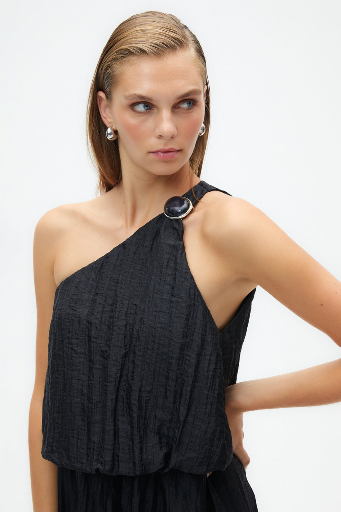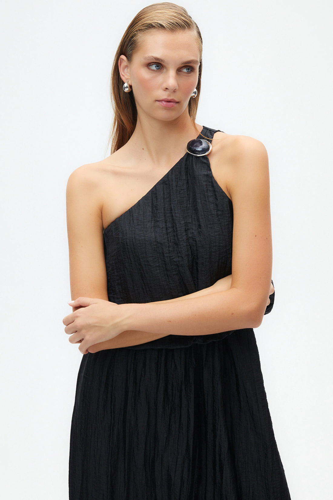 One Sleeve Dress with Accessory Detail (Final Sale)
