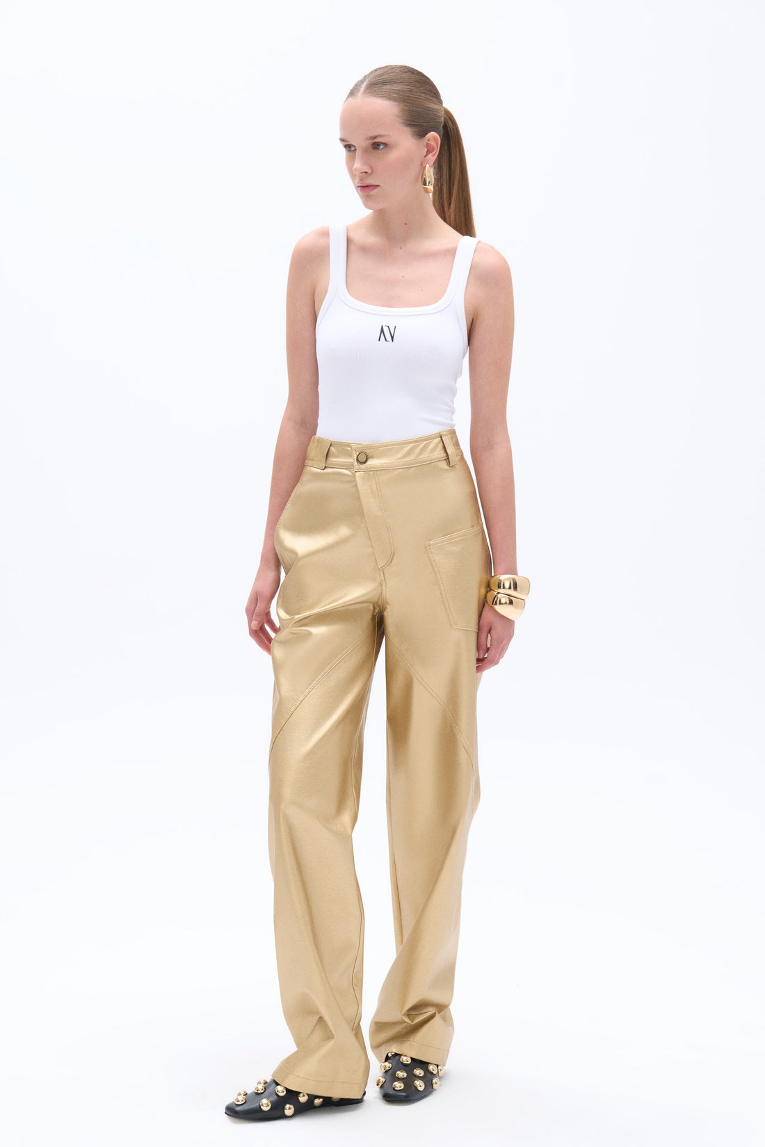 Wide Leg Faux Leather Trousers (Final Sale)- Regular price