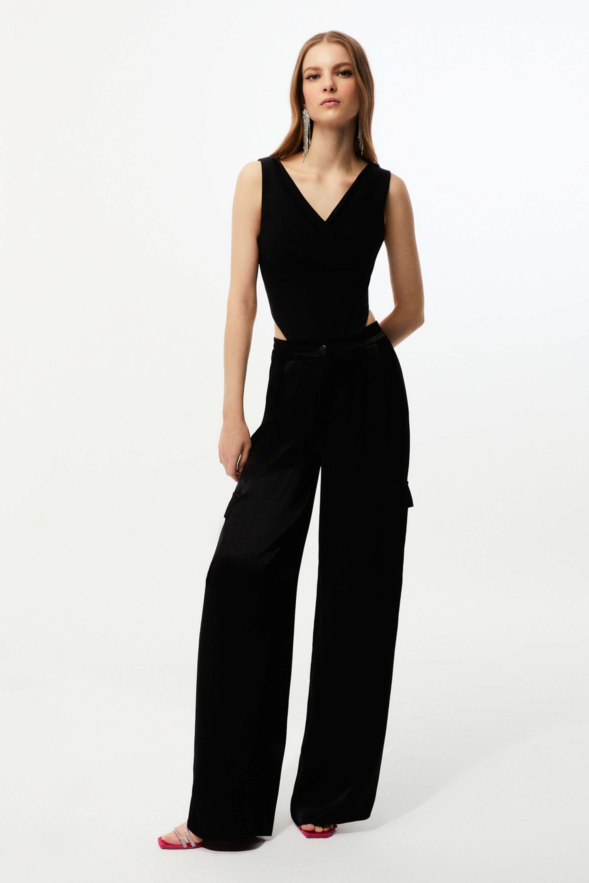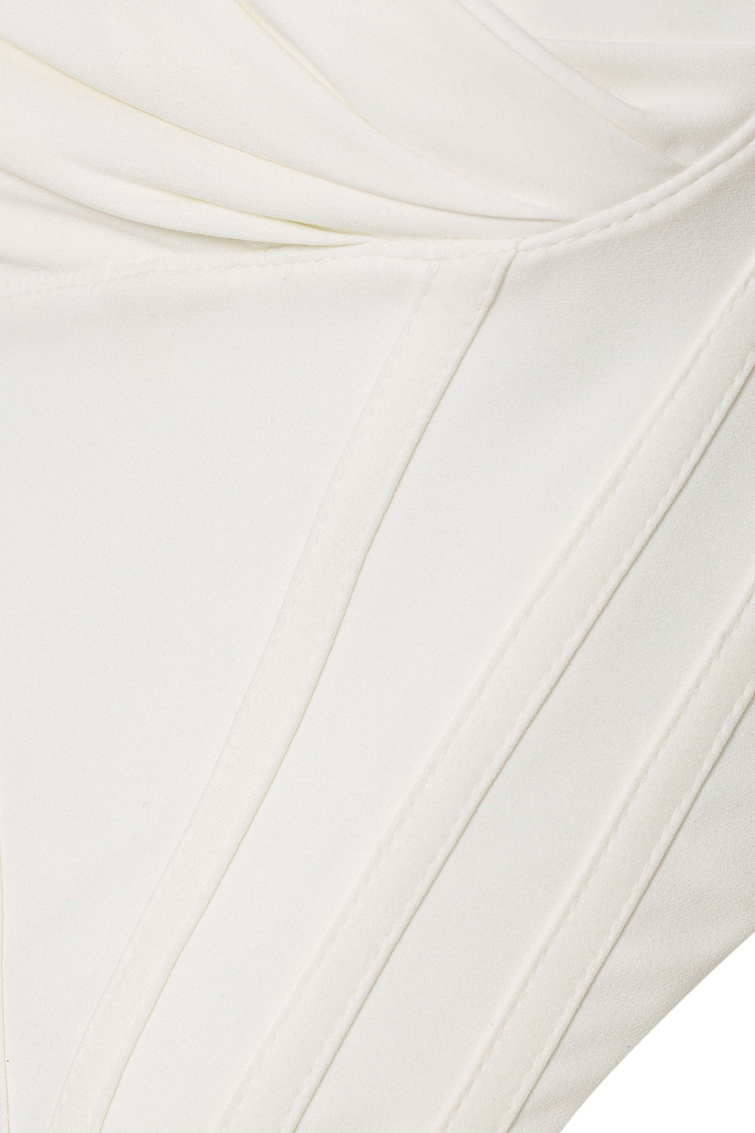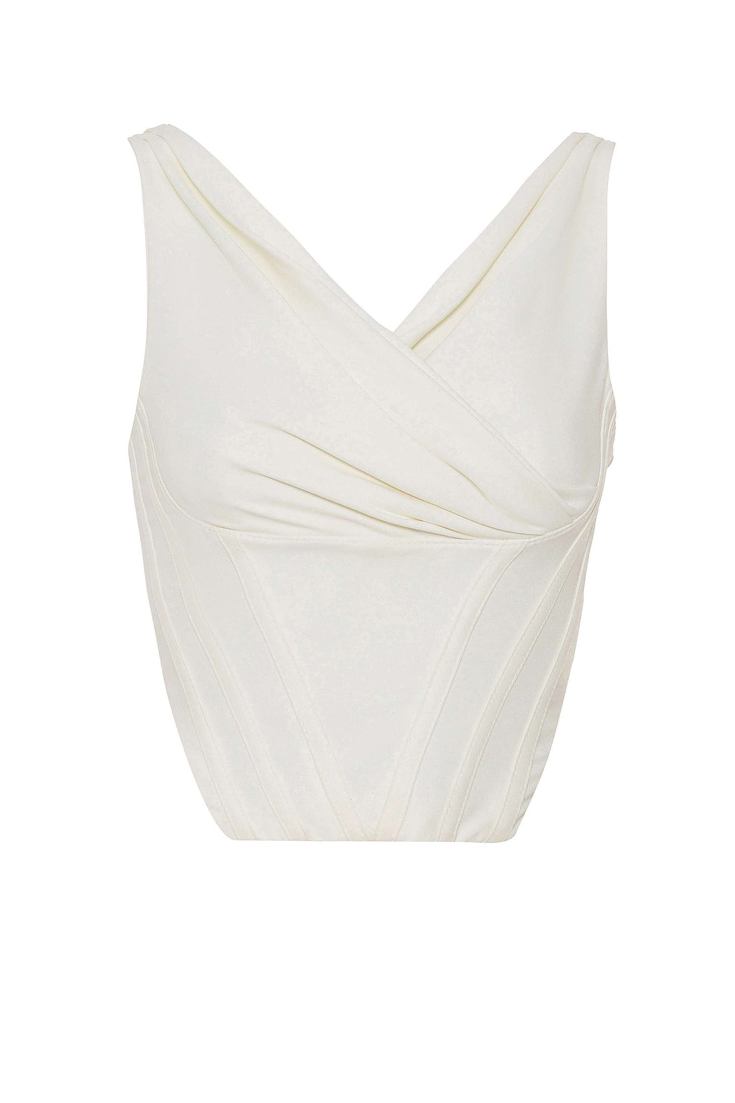 Back zipper closure, crisscross flowy neckline bodice crop top