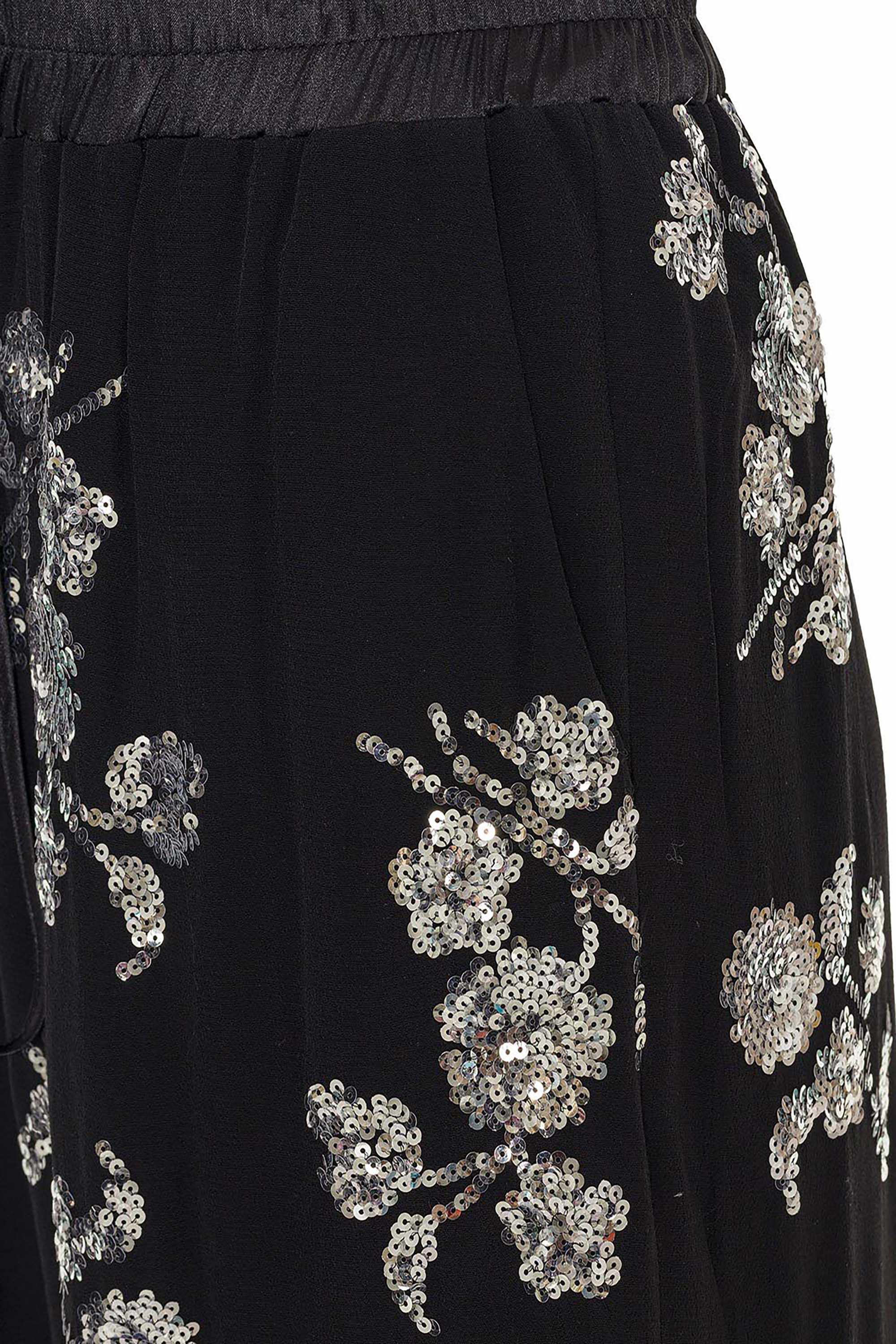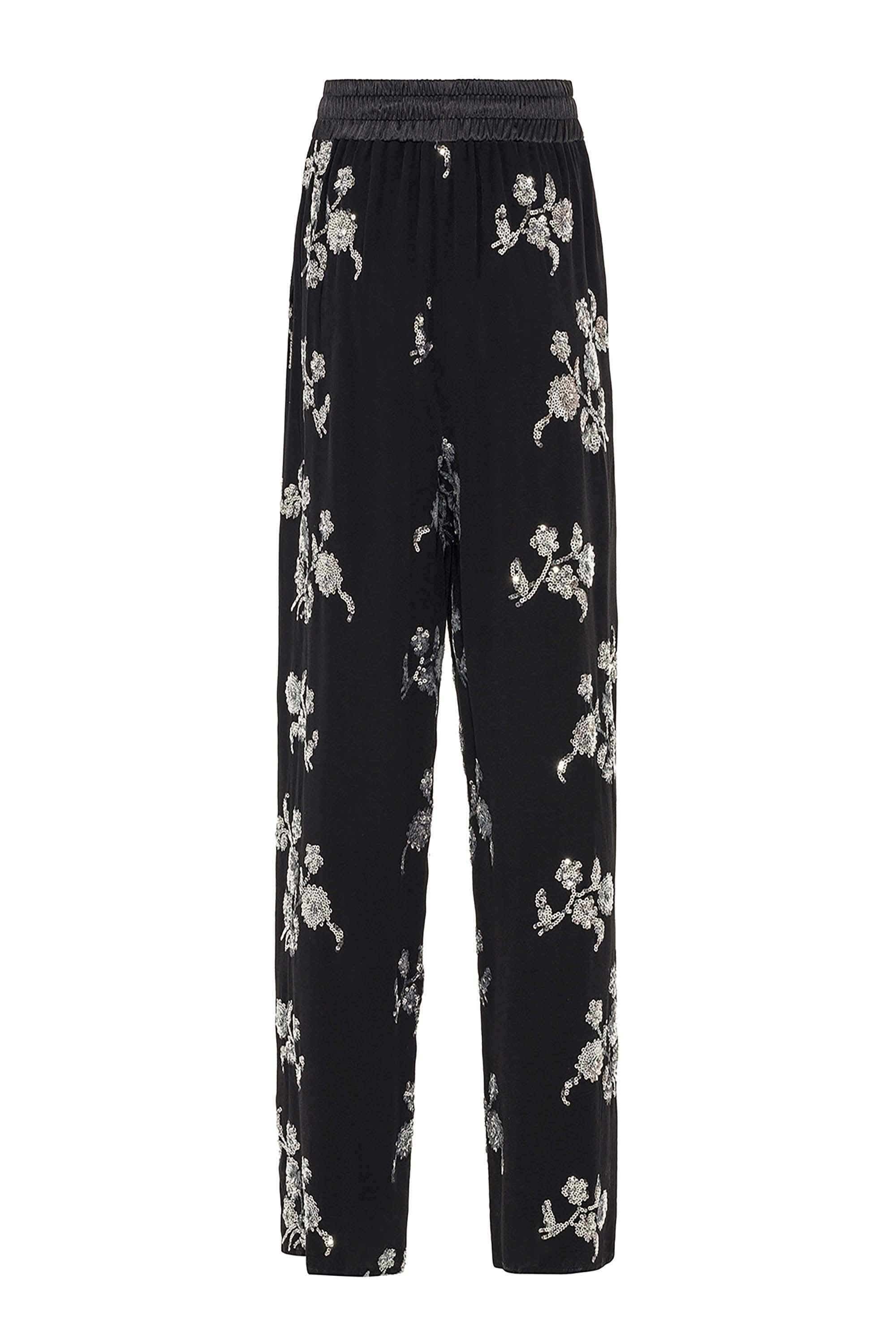 High-waisted wide-leg pants with adjustable waistband, and embroidery detail.