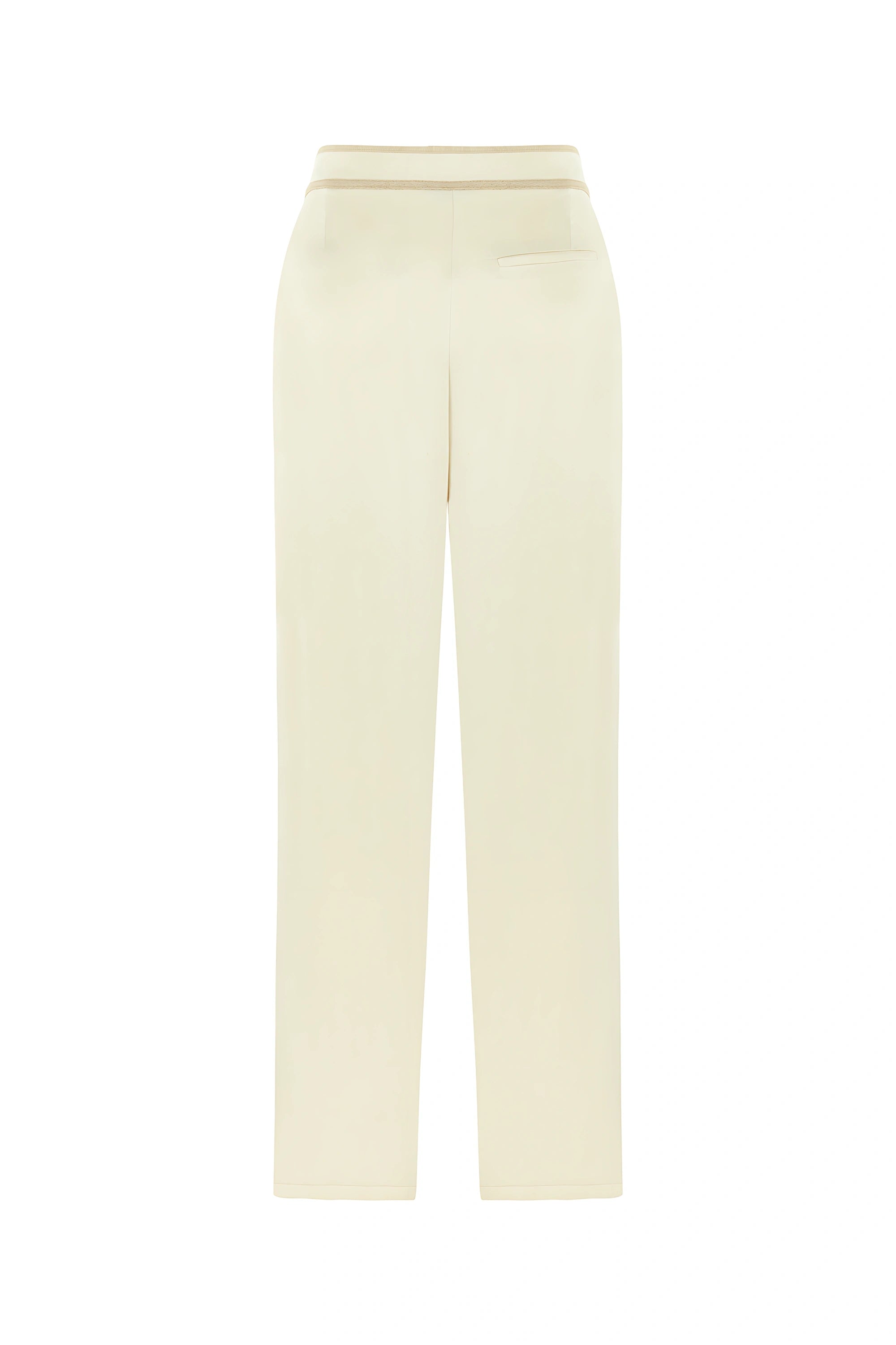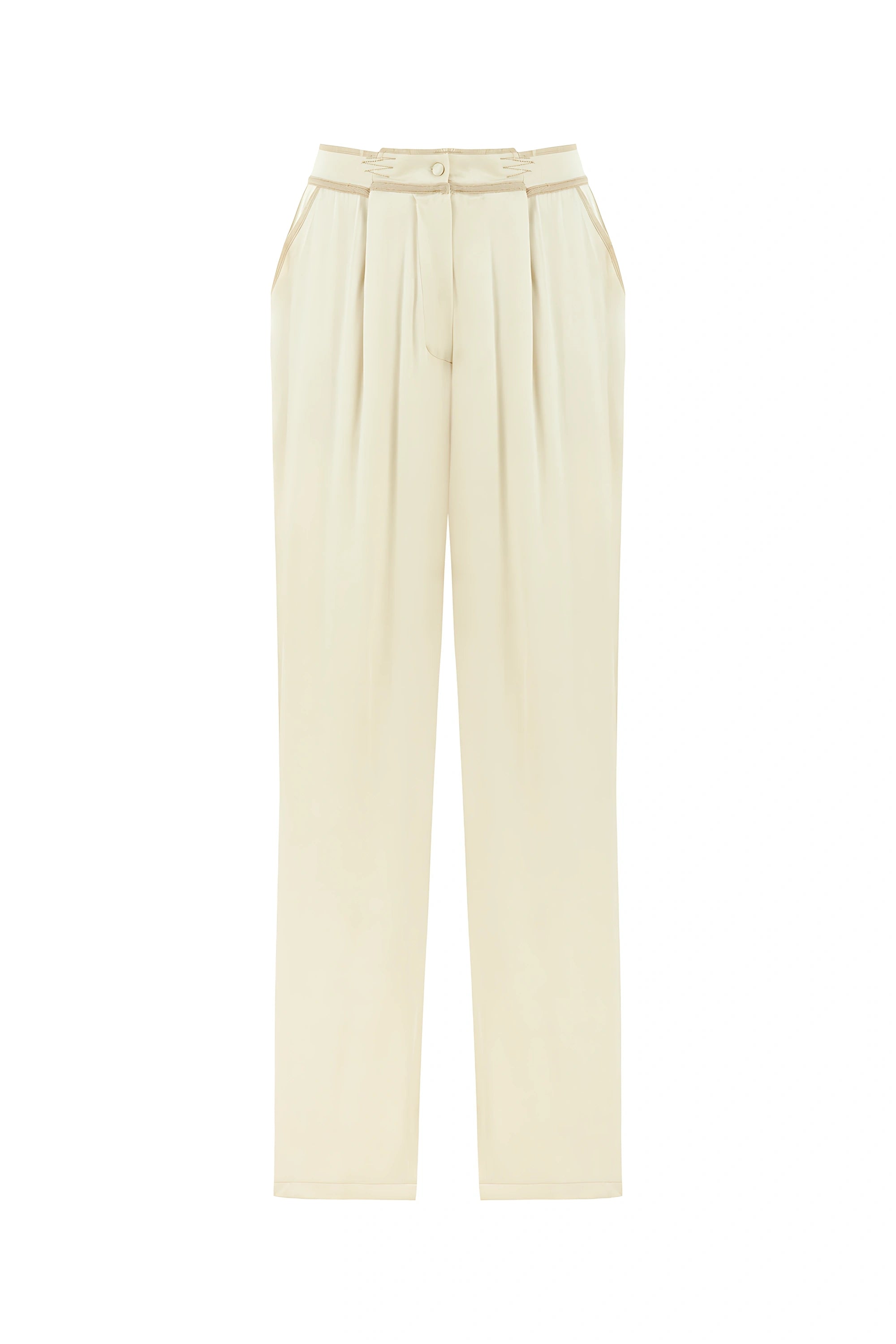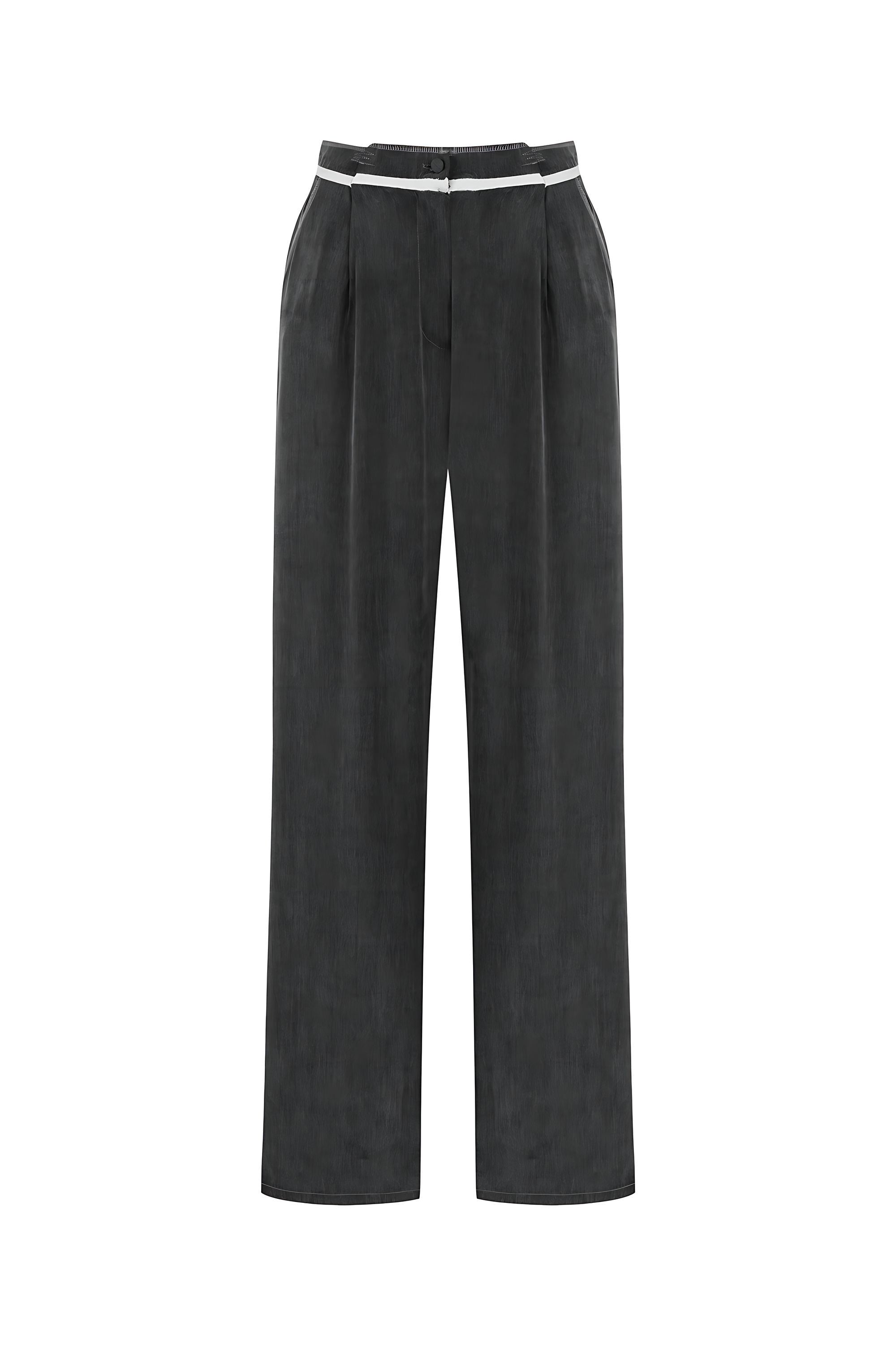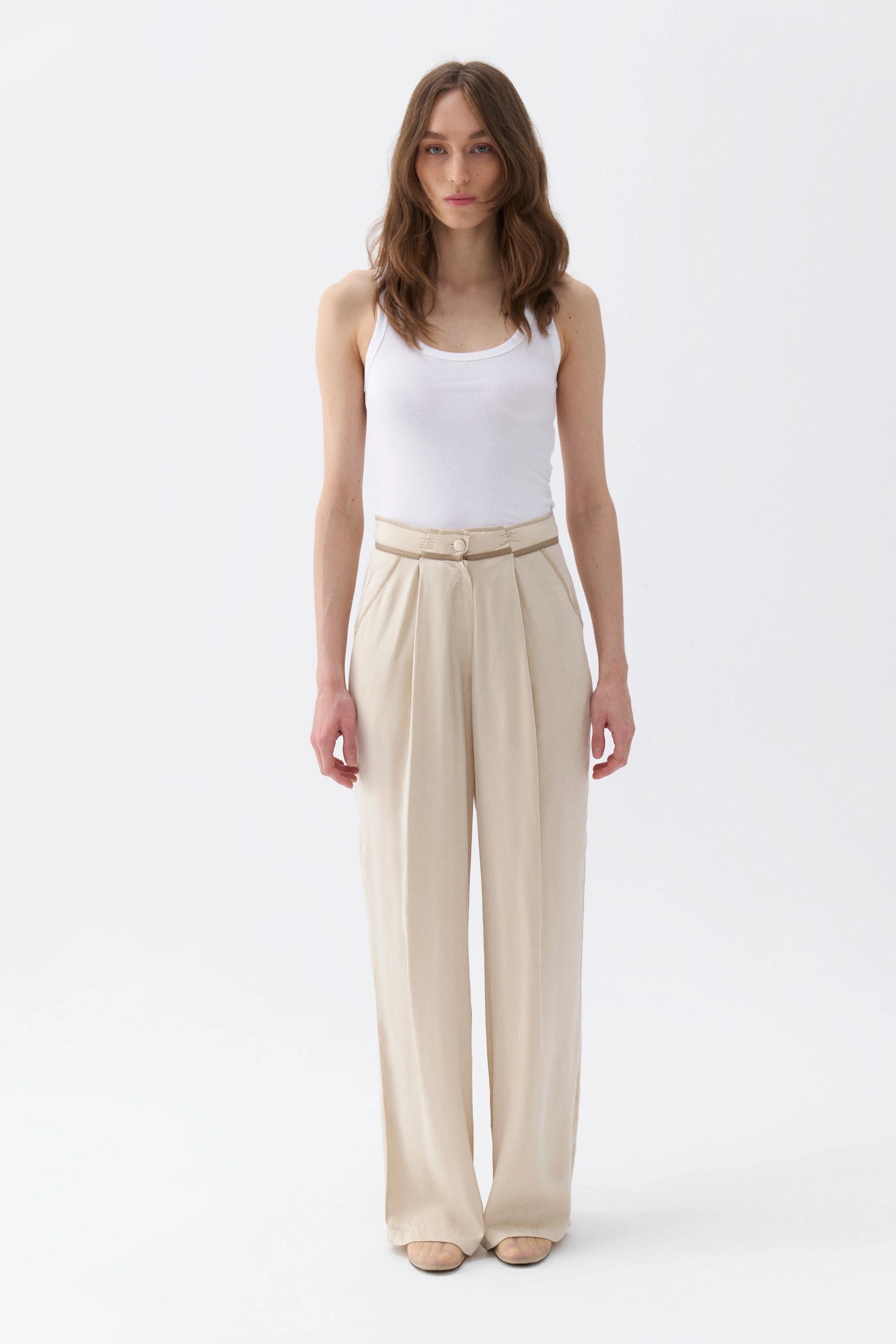 High waist, zipper and metal button closure, wide leg, pockets, pleated palazzo pants.