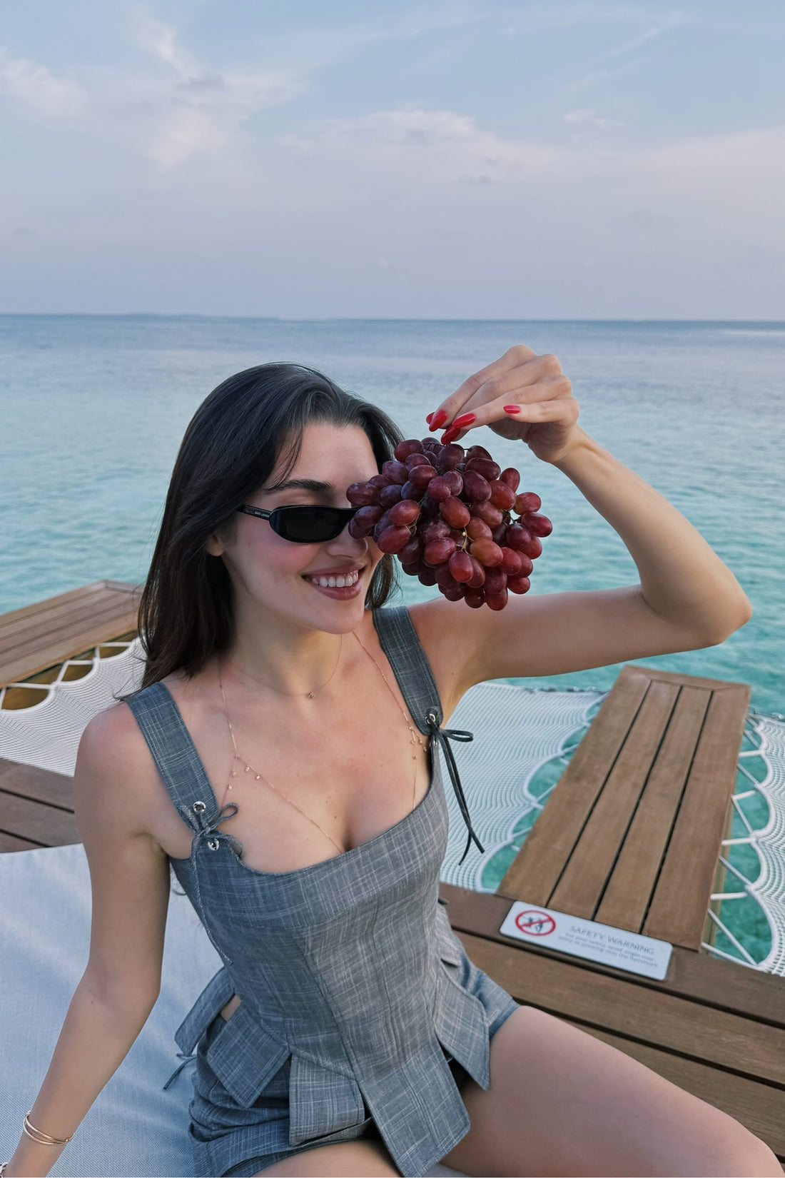 Ecru Linen Brode Detailed Sweetheart Maxi Dress