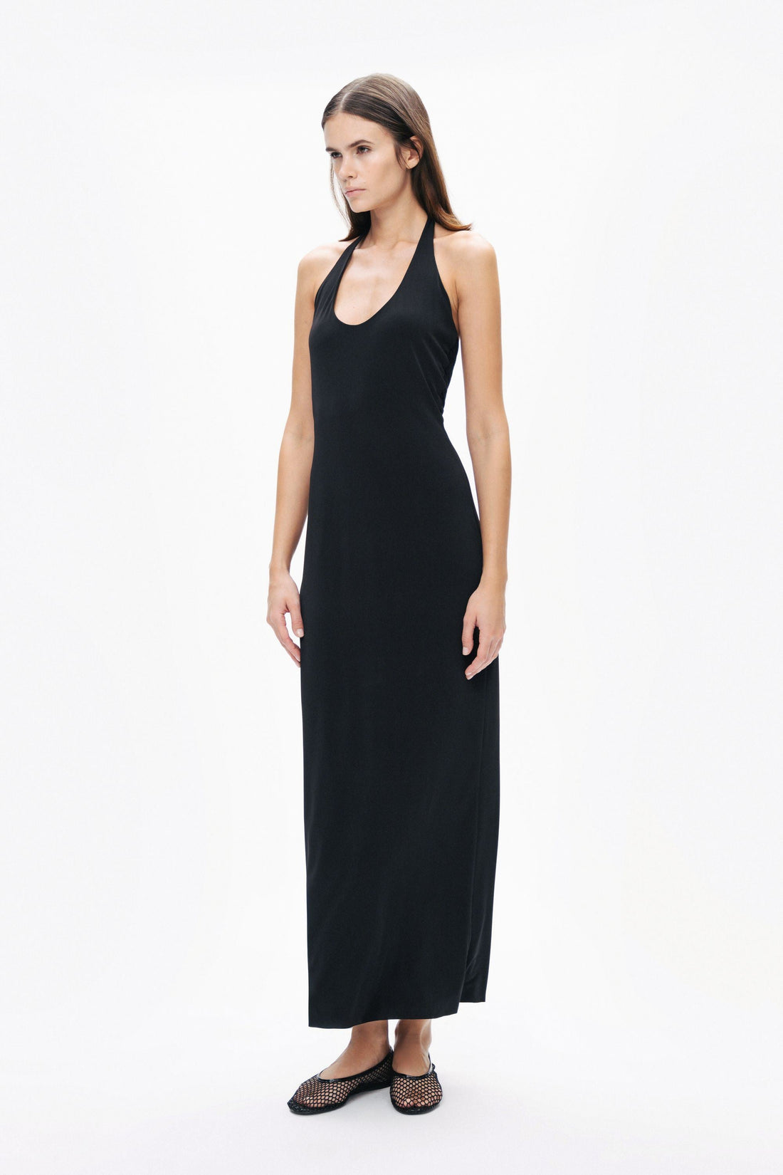 Black Crystal Button Detailed Maxi Dress- Regular price