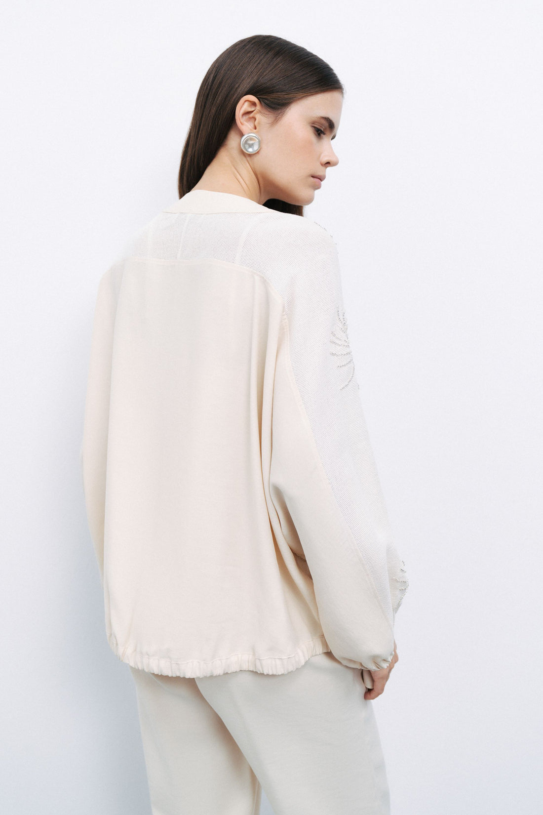 Ecru Crystal Stone Detailed Blouse- Regular price