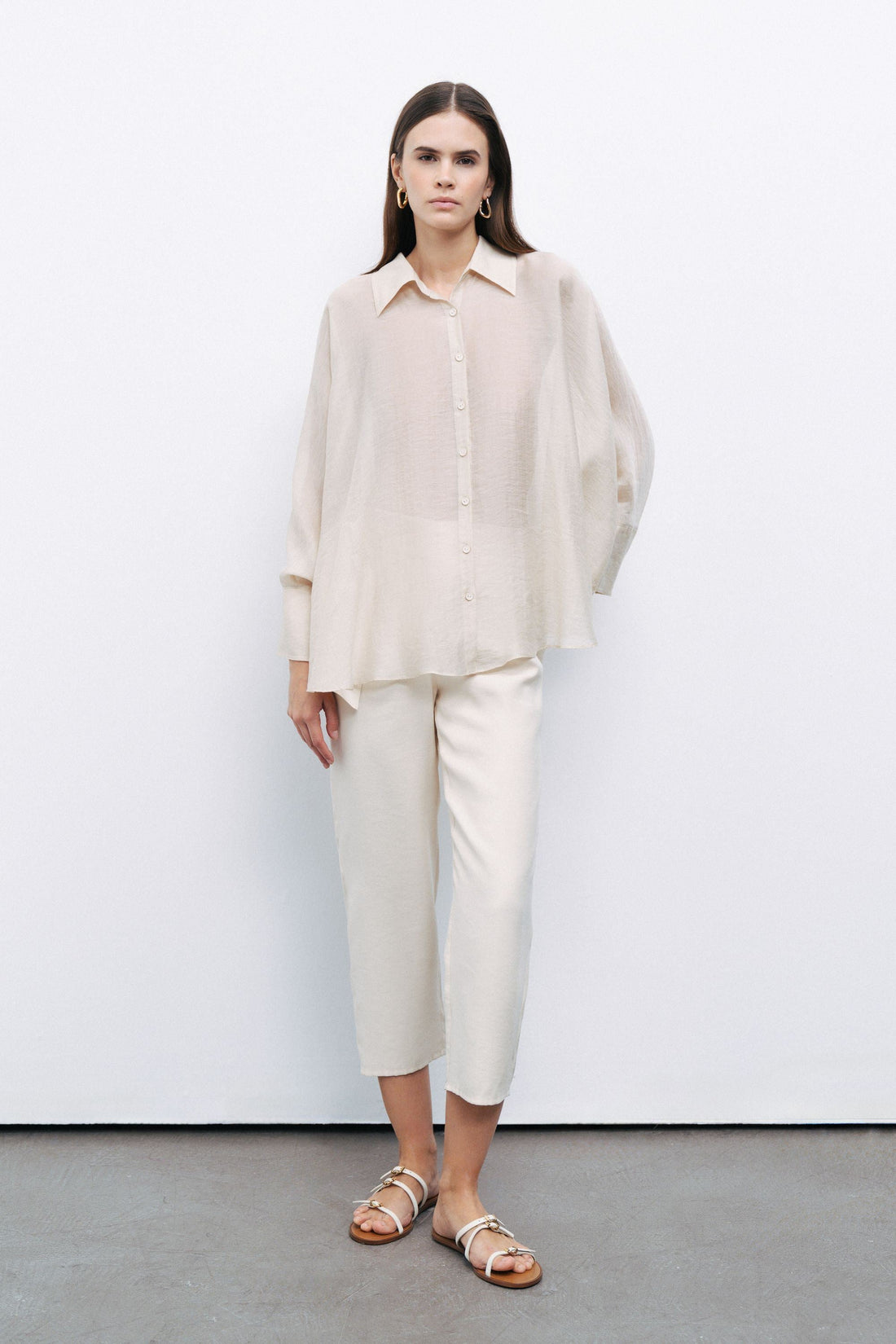 Ecru Asymmetric Placket Detail Trousers- Regular price