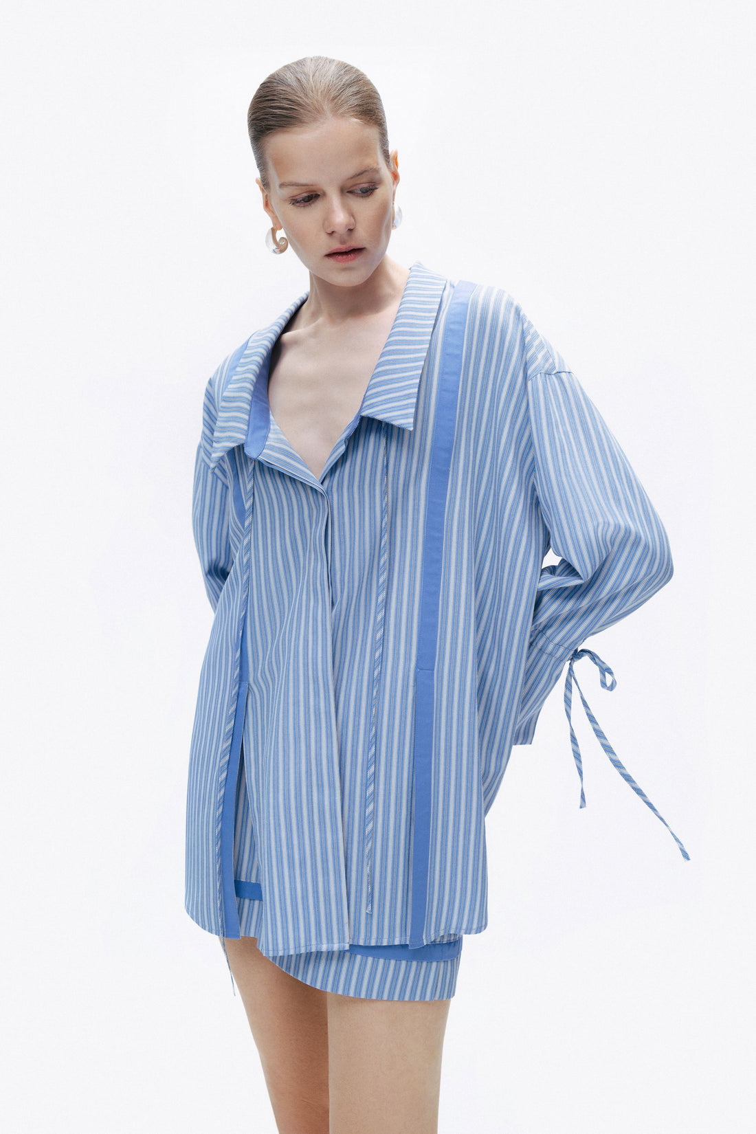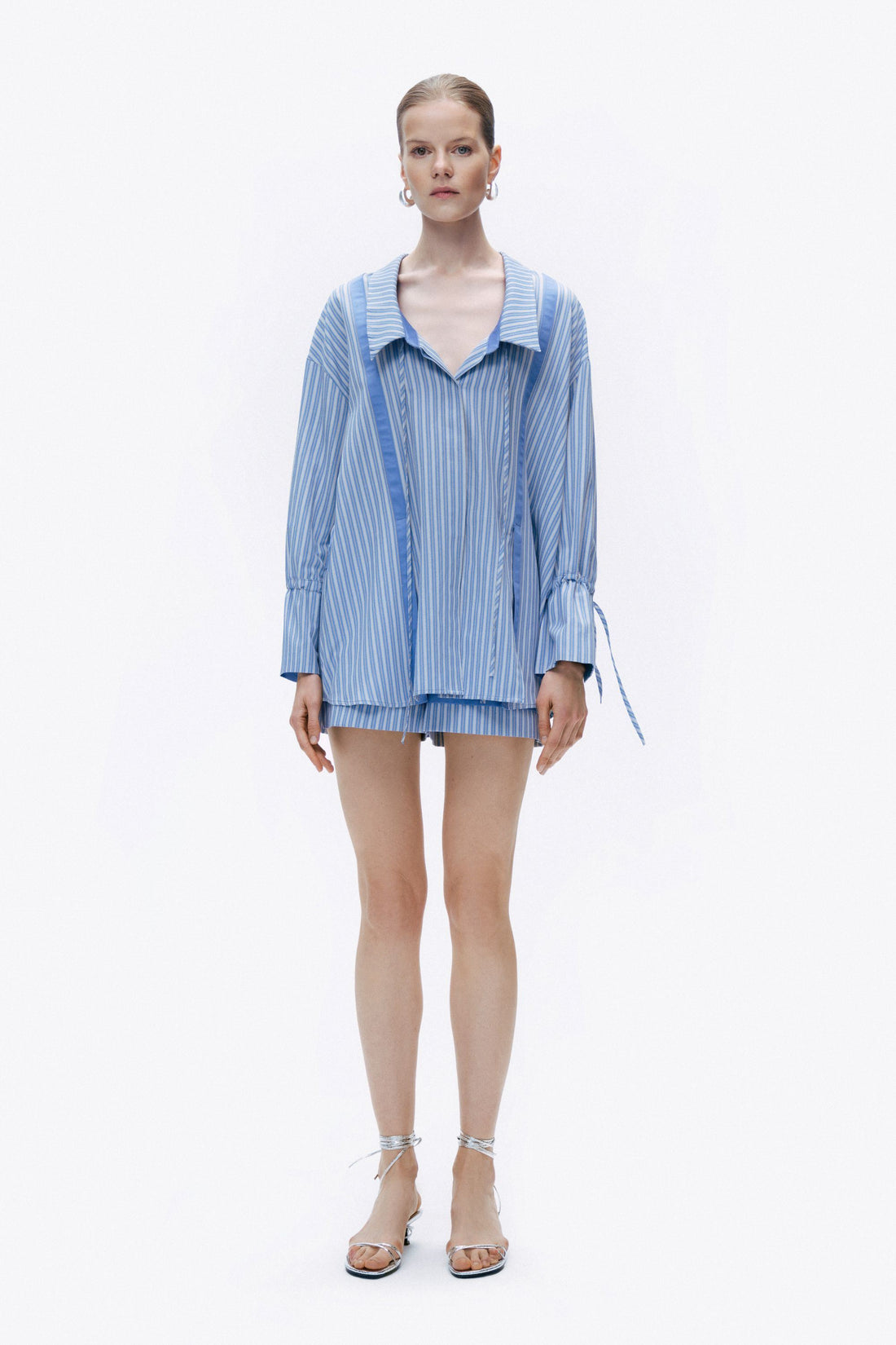 Blue Striped Lace-Up Mini Shorts- Regular price