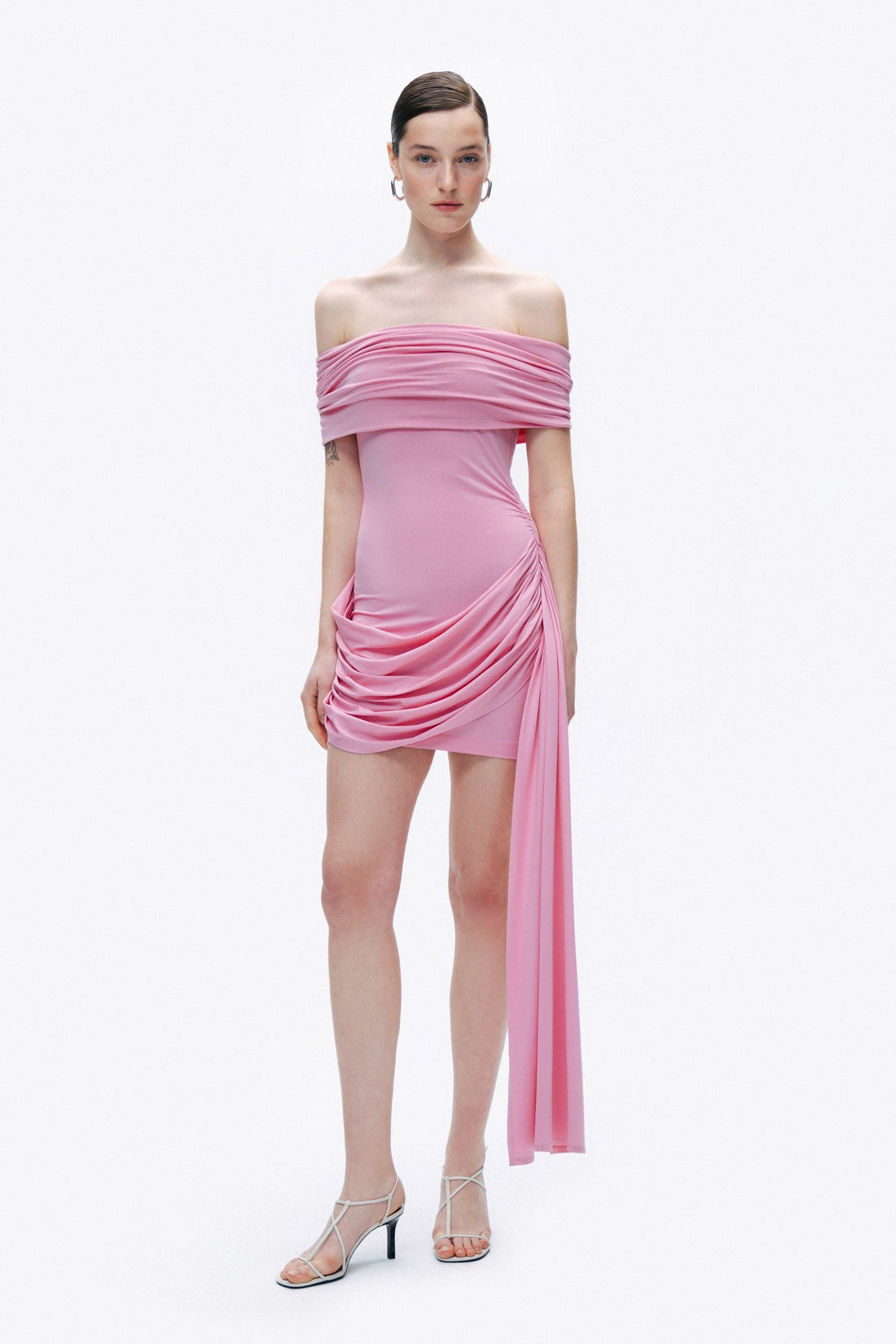 Pink Striped Mini Dress with Zipper Detail- Regular price