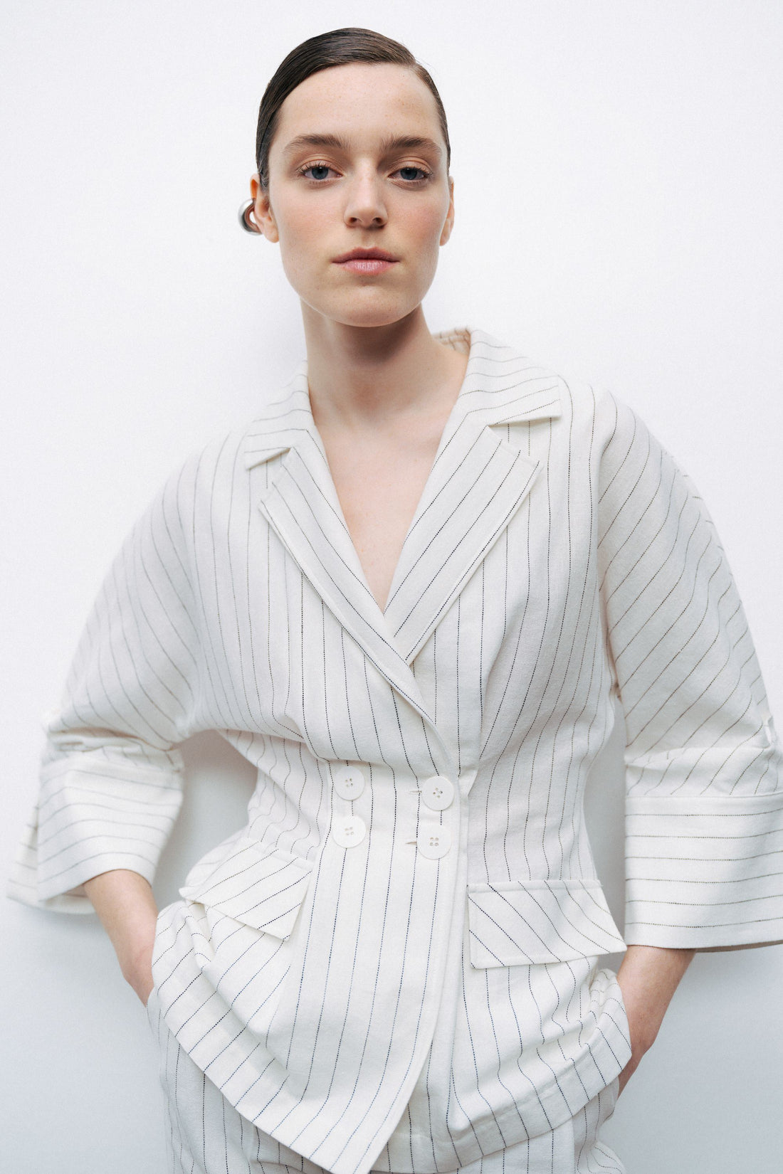 White Linen Blend Halter Neck Blouse with Tie Detail