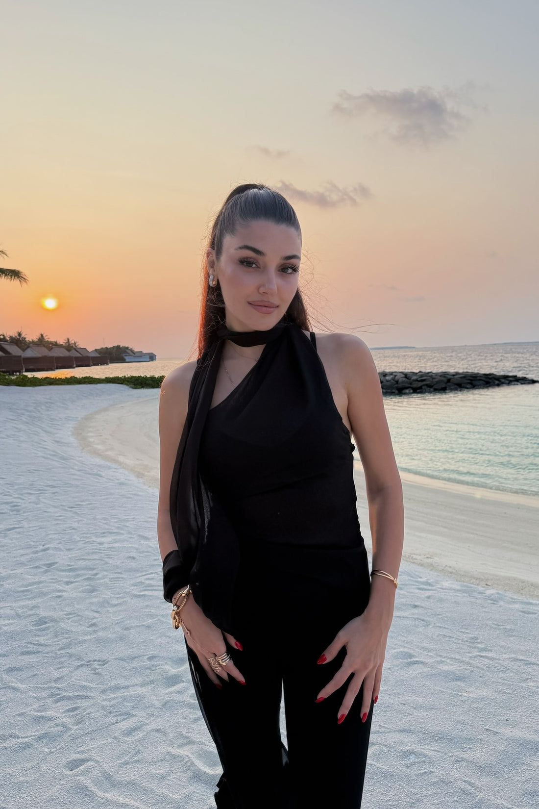 White Linen Blend Halter Neck Blouse with Tie Detail- Regular price
