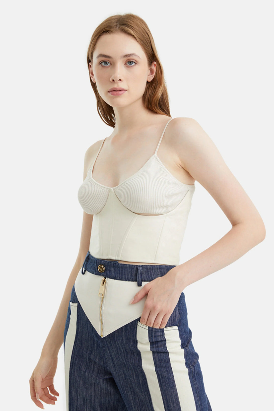 Ecru Belt Strap Detailed Crop Top- Regular price