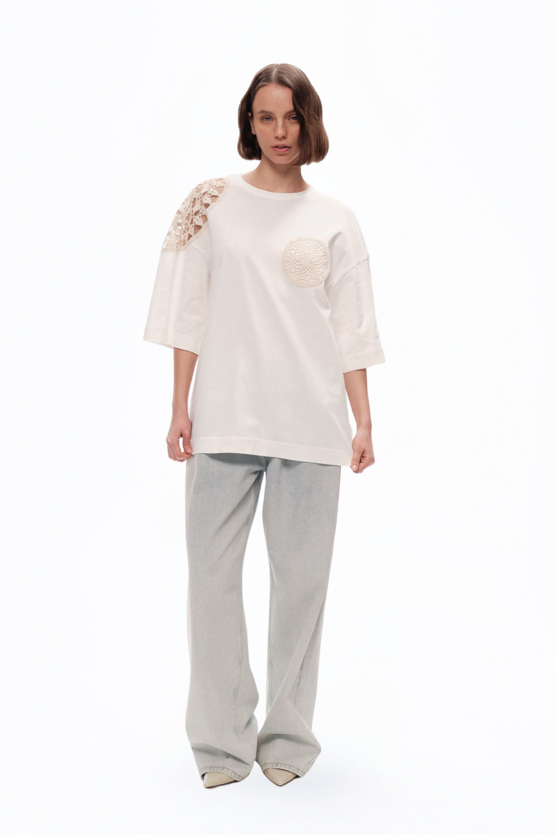 Ecru Crystal Stone Detailed Blouse