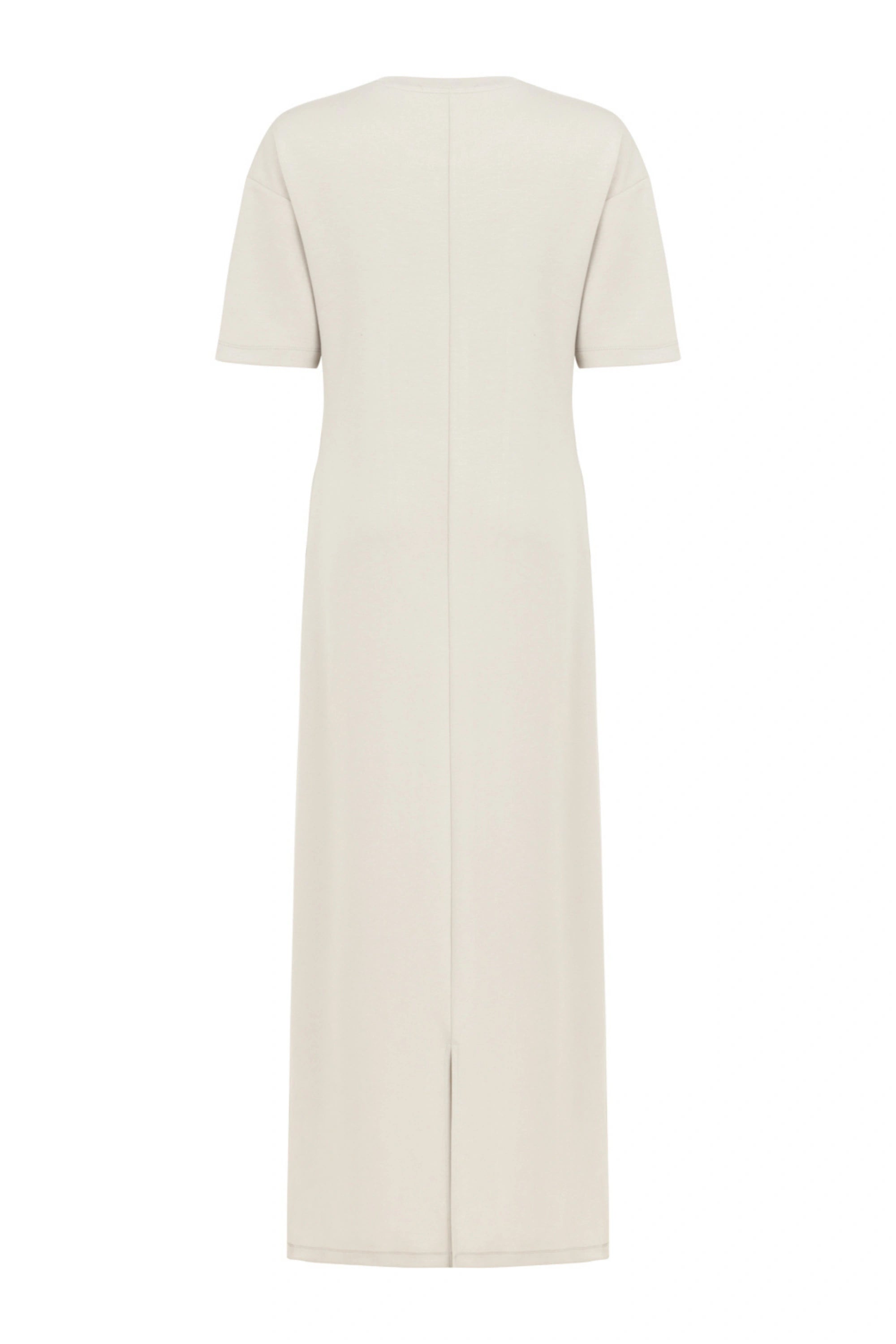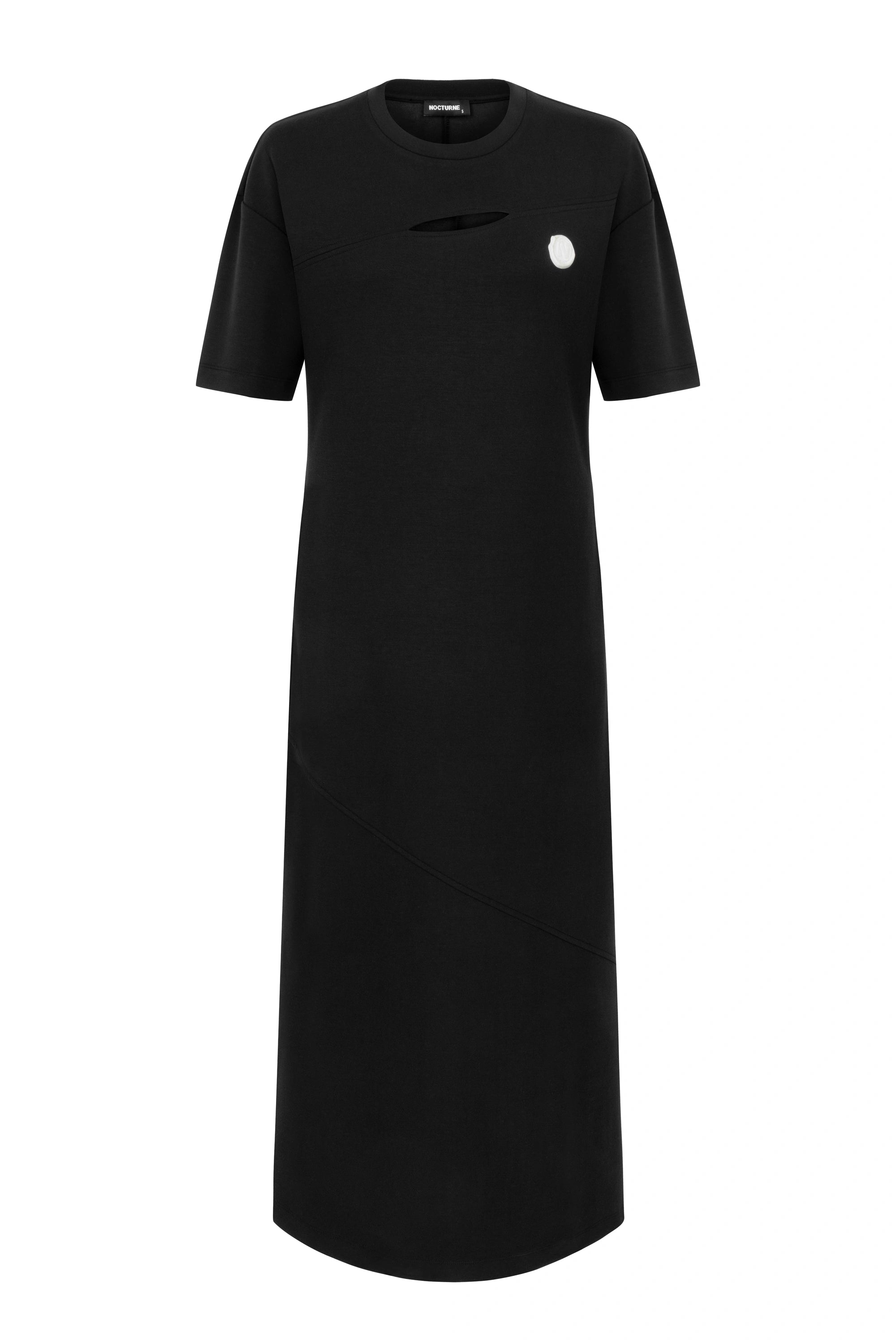 Round neck, short sleeves, long dress with window details